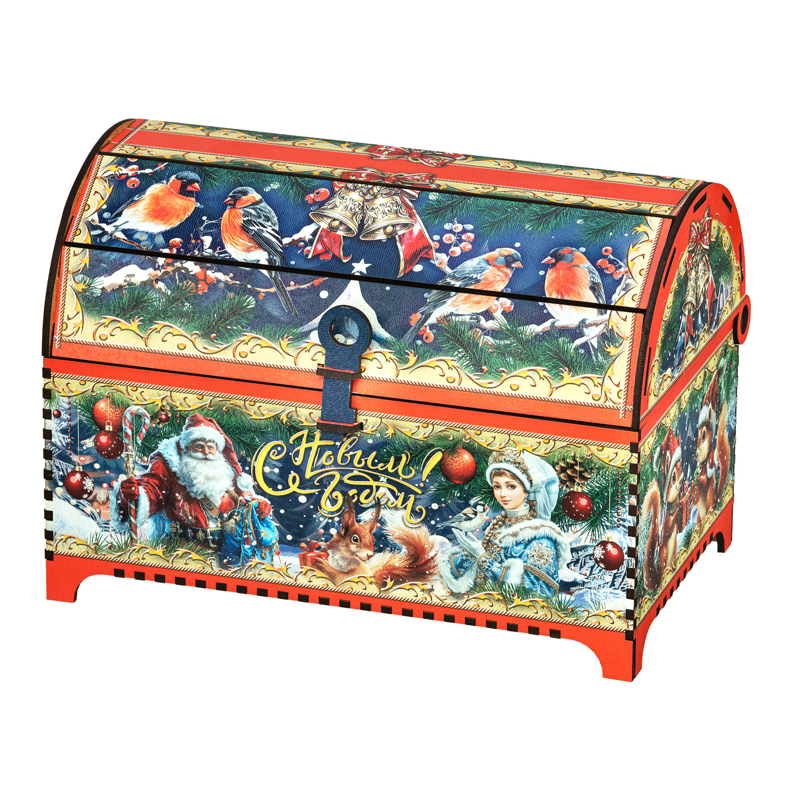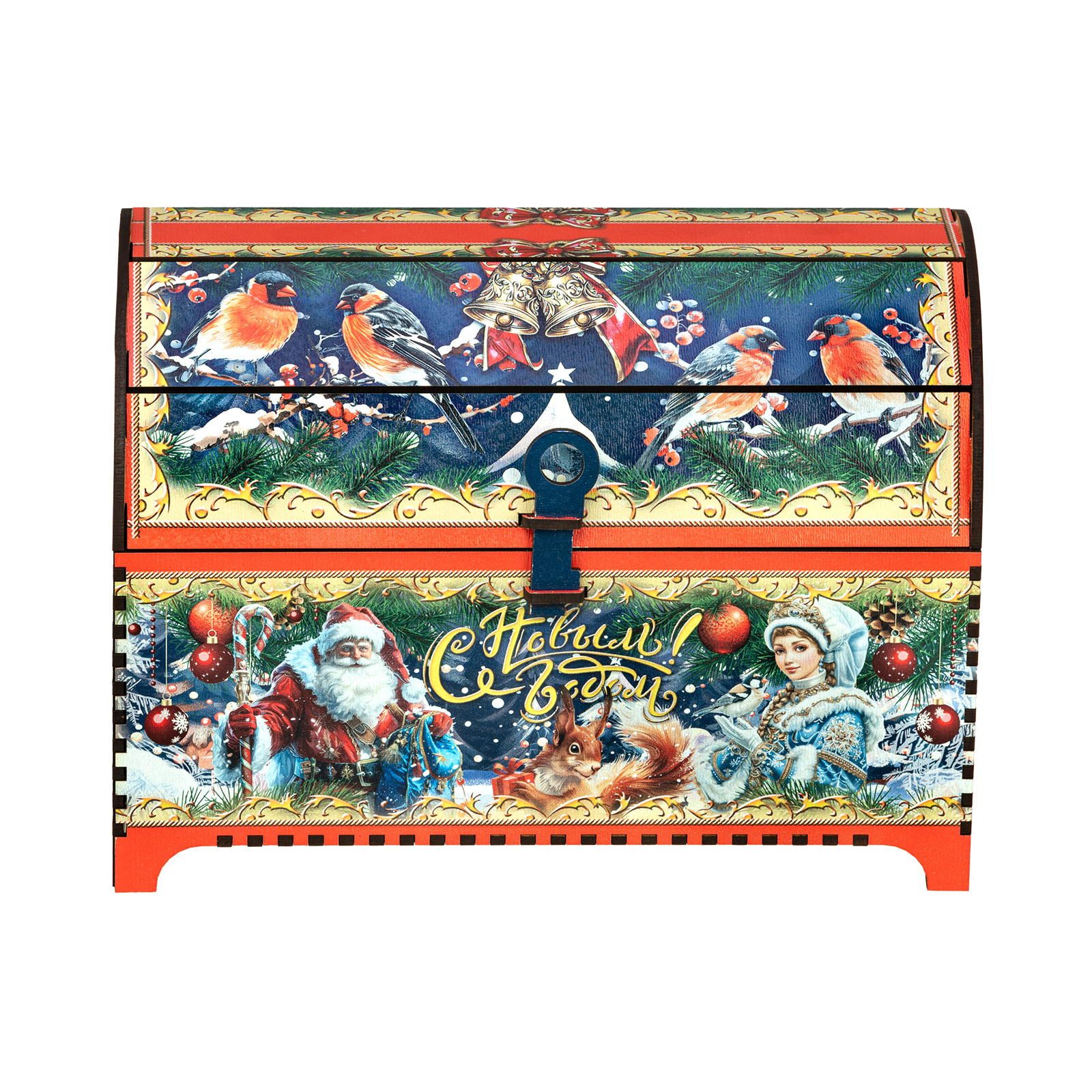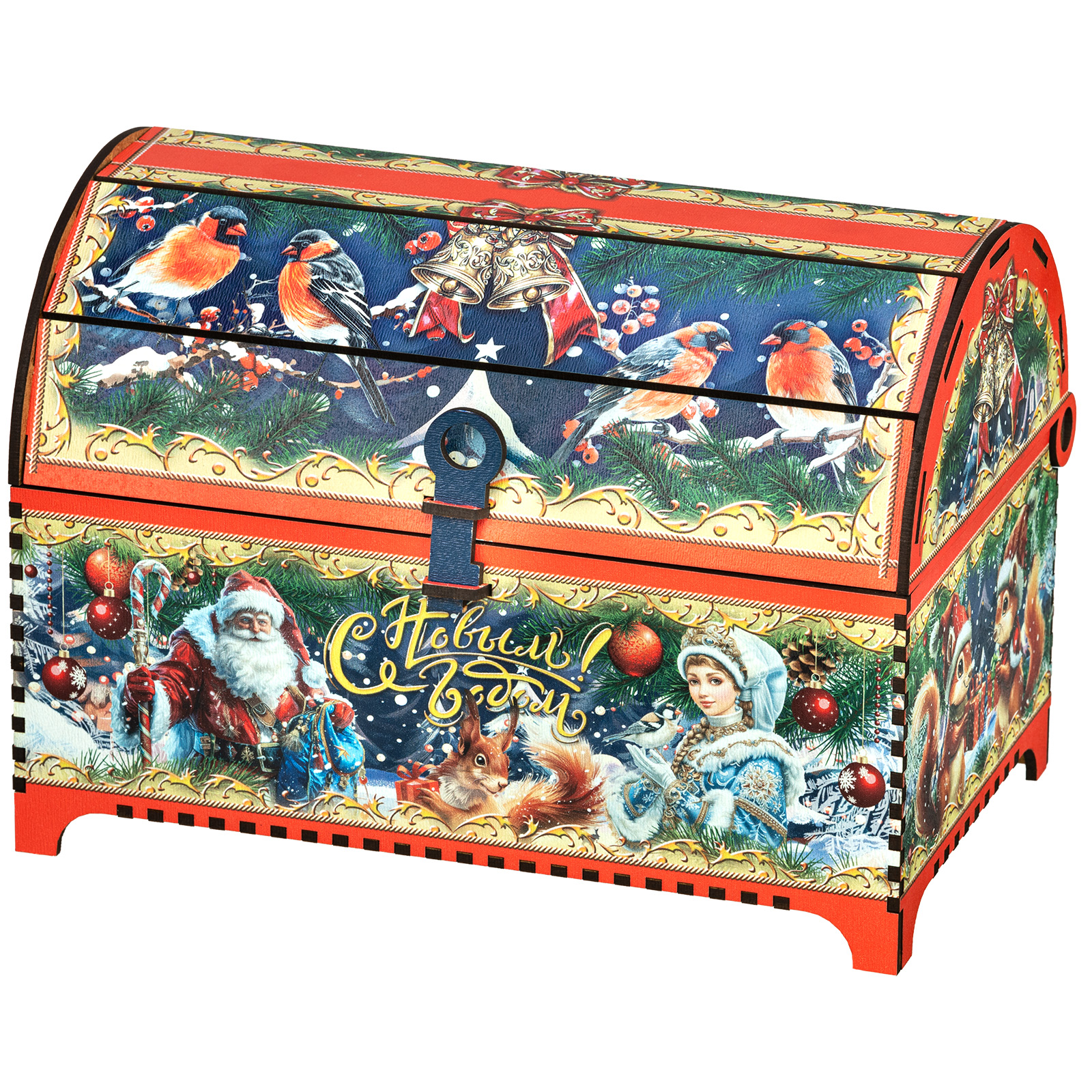 “Ларец сказка” - это прекрасный выбор подарка для тех, кто уже давно вырос, но в душе все еще верит в волшебство новогодних праздников. Подарочная упаковка заставляет просто замереть от восторга. Это самый настоящий сундук, пышно украшенный со всех сторон яркими новогодними иллюстрациями. Но что же скрывается внутри? Там самые настоящие сокровища, прям как в любимой сказке из далекого детства! Внутри разнообразные лакомства на любой вкус, способные из обычного чаепития сделать самое настоящее праздничное торжество. Такой сладкий подарок способен даже в самом серьезном и важном взрослом на несколько мгновений пробудить ребенка, свято верящего в чудо.