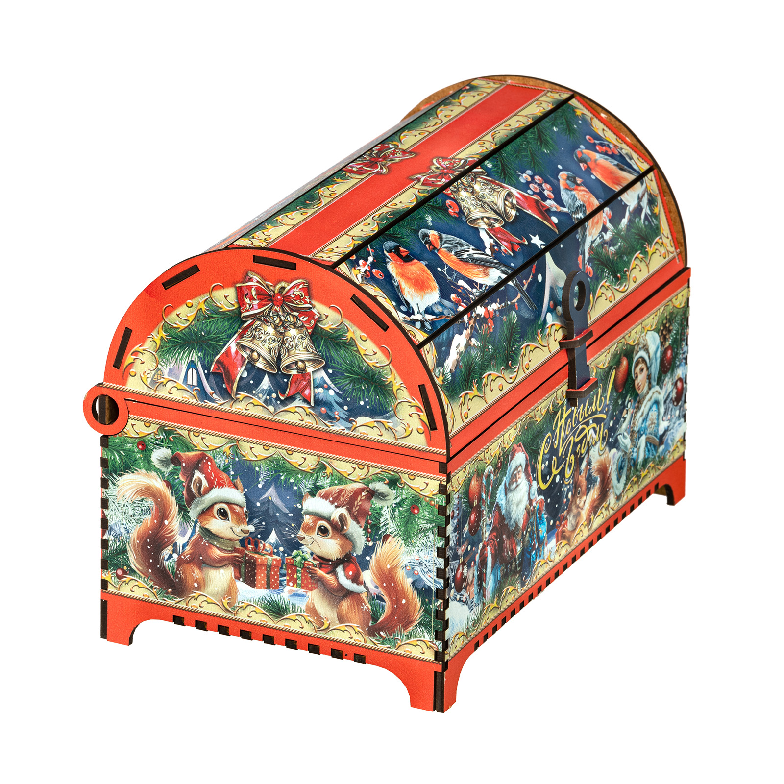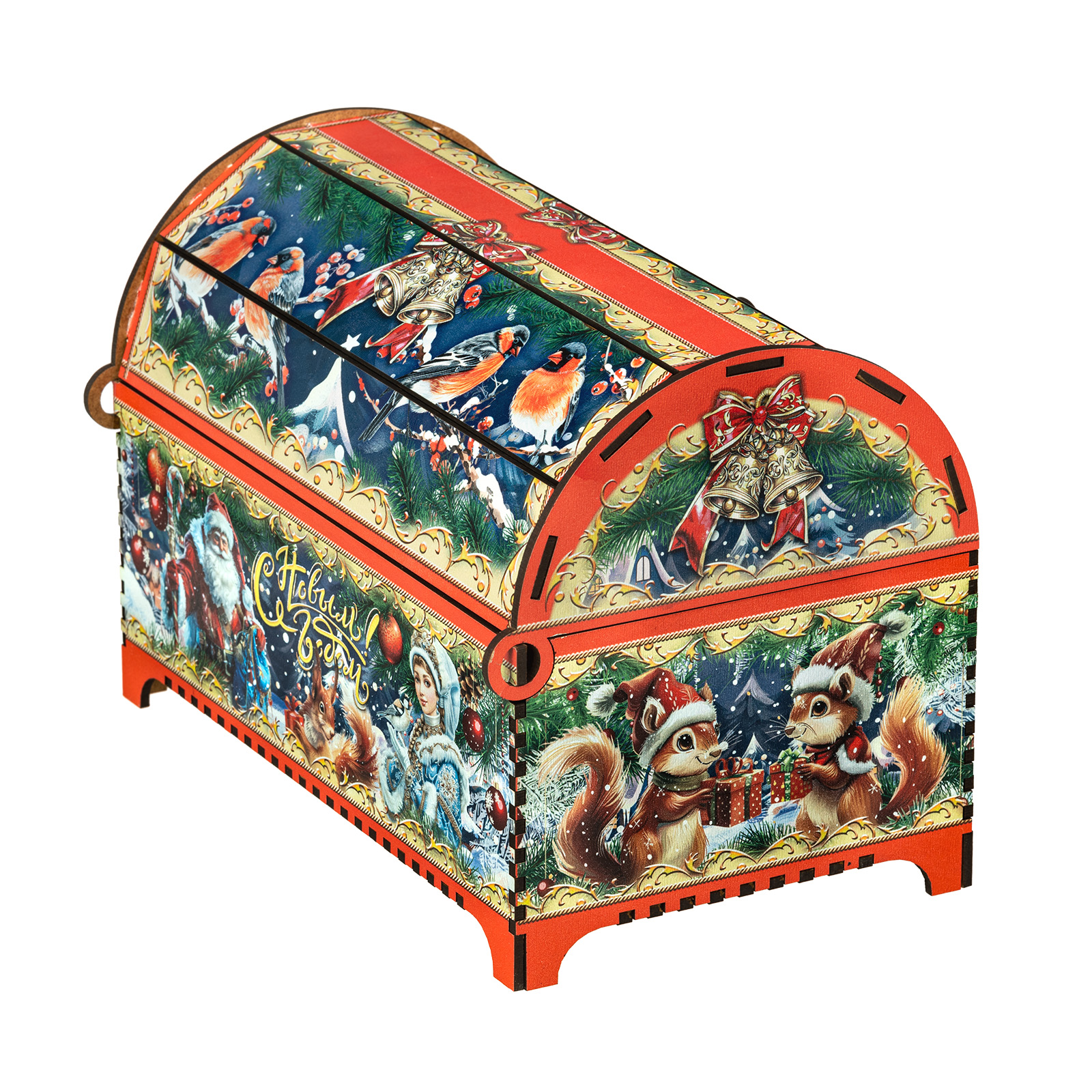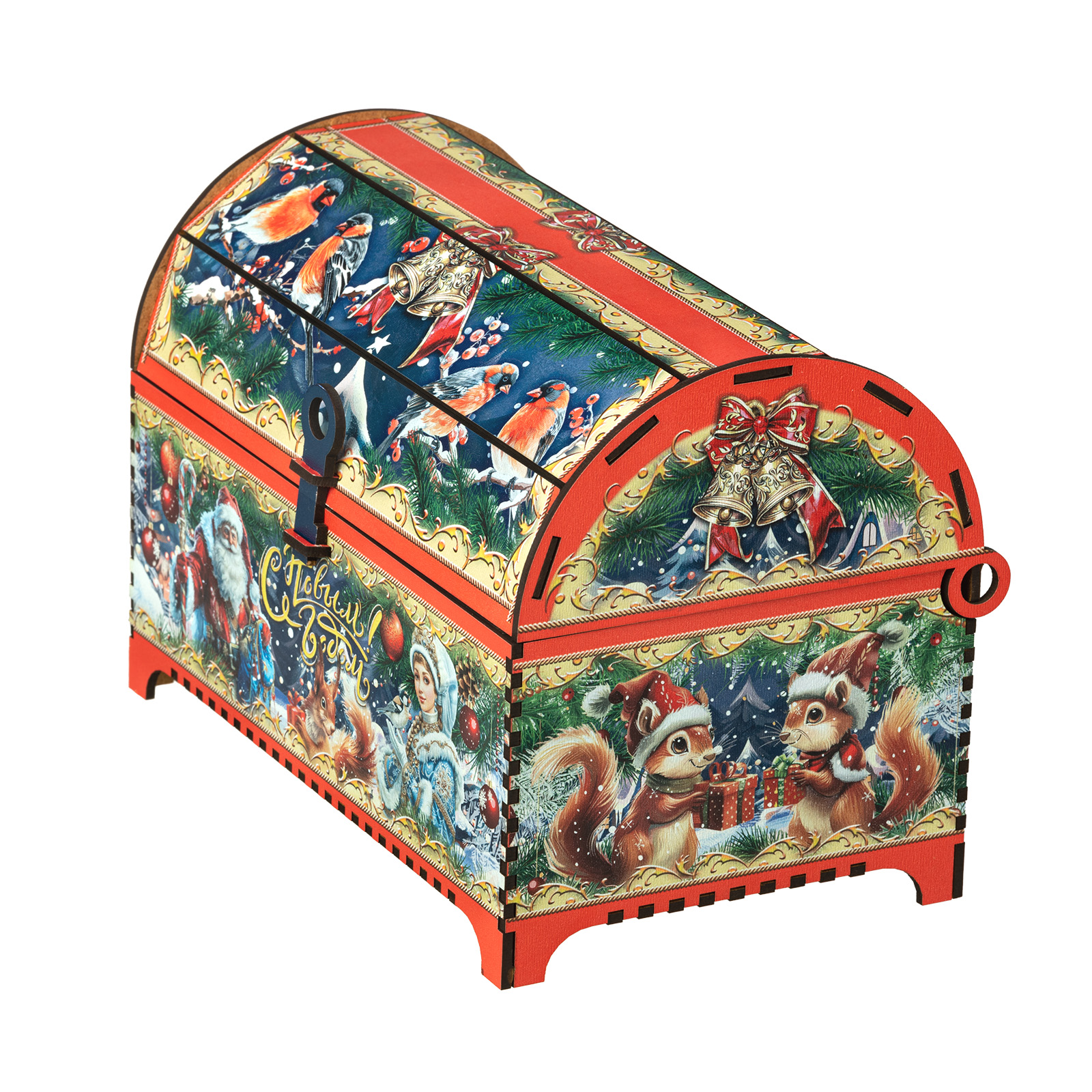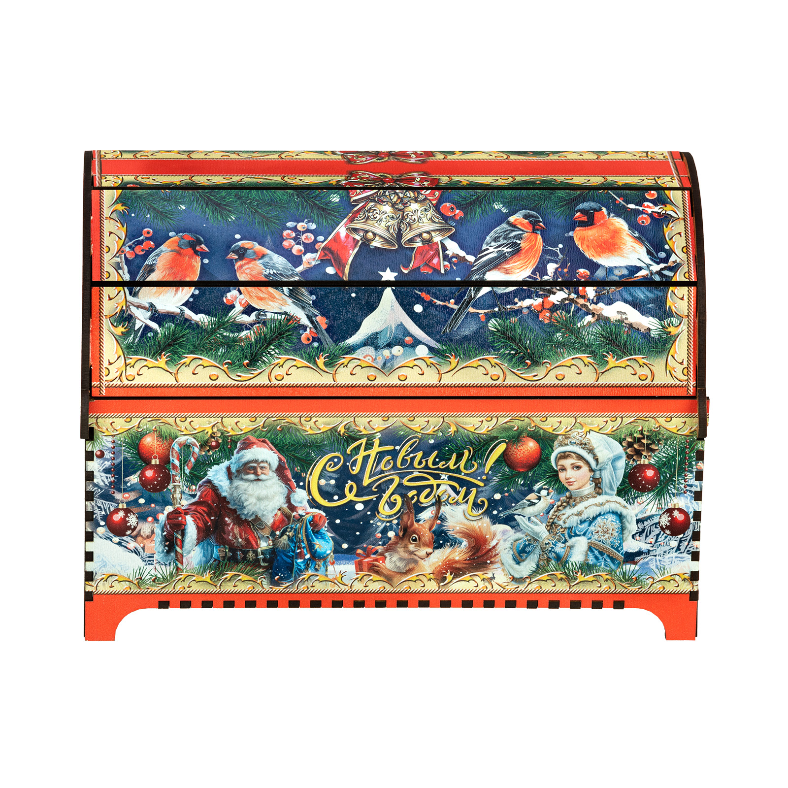 “Ларец сказка” - это прекрасный выбор подарка для тех, кто уже давно вырос, но в душе все еще верит в волшебство новогодних праздников. Подарочная упаковка заставляет просто замереть от восторга. Это самый настоящий сундук, пышно украшенный со всех сторон яркими новогодними иллюстрациями. Но что же скрывается внутри? Там самые настоящие сокровища, прям как в любимой сказке из далекого детства! Внутри разнообразные лакомства на любой вкус, способные из обычного чаепития сделать самое настоящее праздничное торжество. Такой сладкий подарок способен даже в самом серьезном и важном взрослом на несколько мгновений пробудить ребенка, свято верящего в чудо.