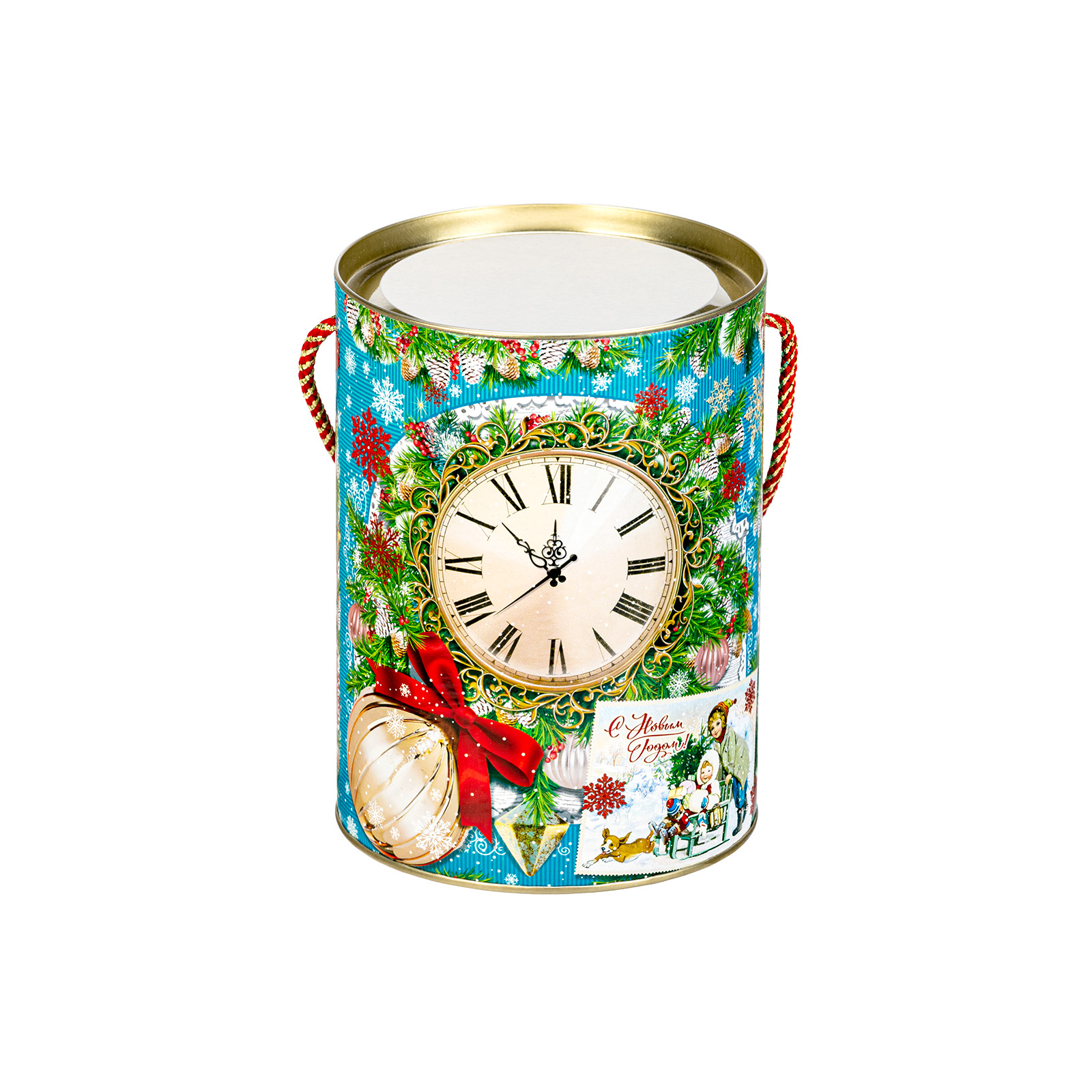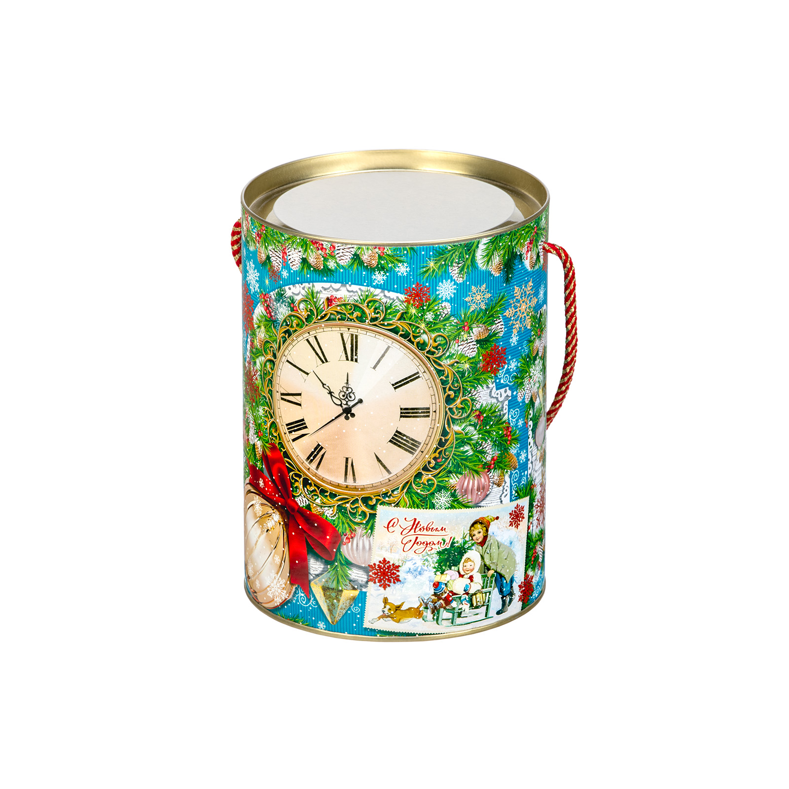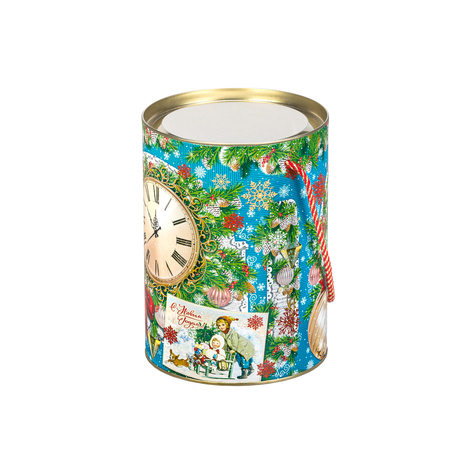 Базовый новогодний сладкий подарок, который придется по душе сластене абсолютно любого возраста. Подарочная упаковка, сделанная из плотного картона, выполнена в виде тубы, украшенной яркими новогодними рисунками: открытками, елочными шариками, снежинками. Упаковка имеет плотную металлическую крышку, а также удобную ручку-веревку ярко-красного цвета. Внутри этой тубы бережно хранятся самые разнообразные вкусные сладости, которые станут идеальным дополнением на любом семейном чаепитии в эти новогодние праздники!
