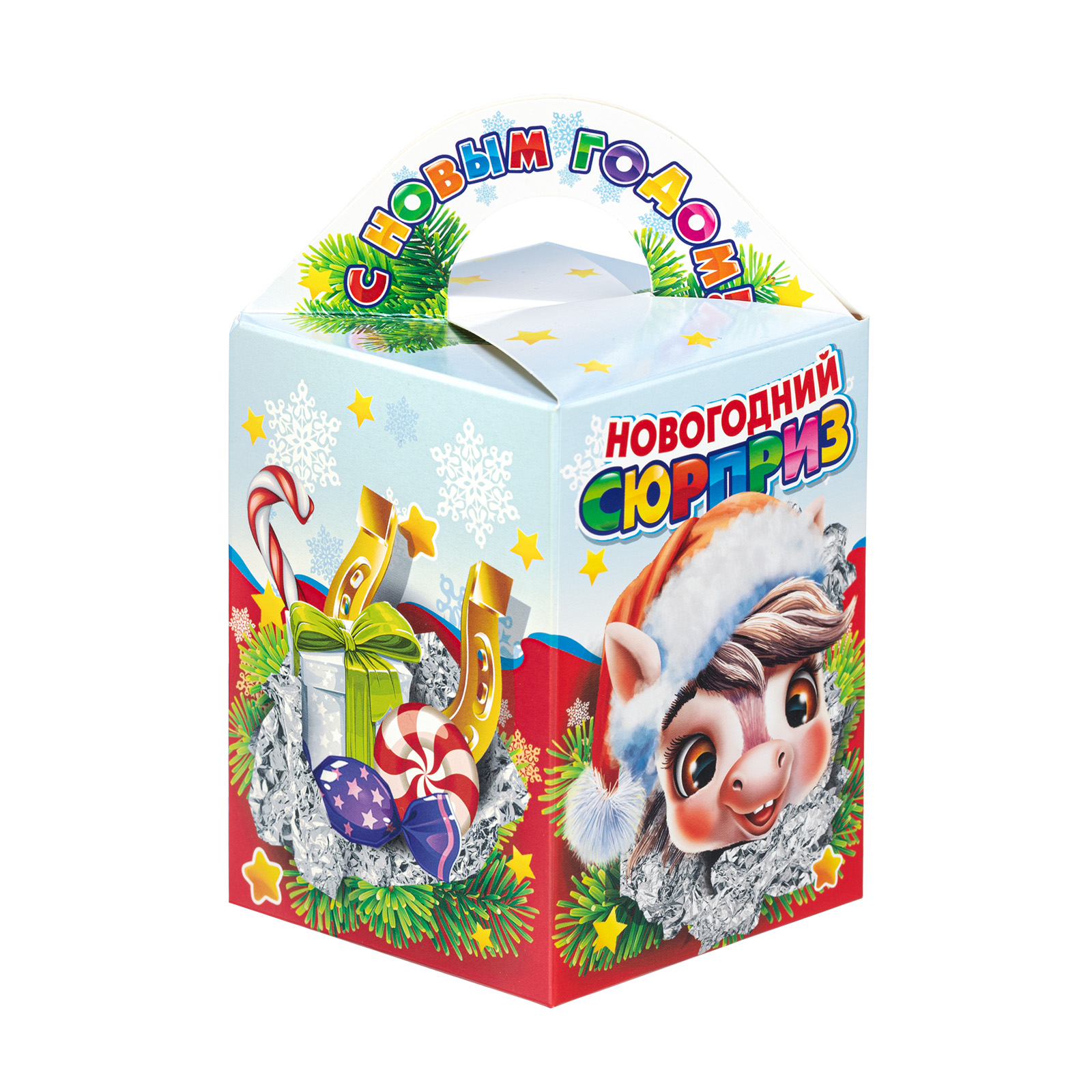 Интересный вариант новогоднего подарка – «Вкусный привет (Полезный состав)». Он представлен в разделе Картон. Отлично подойдет на подарок в 2026 году с символом Лошадь. Внутри такого презента находится кондитерский набор весом 300 граммов.